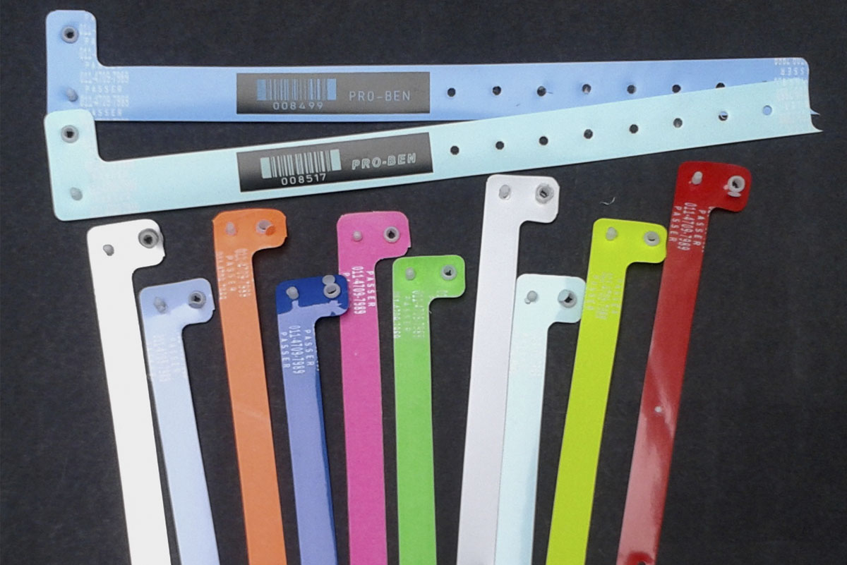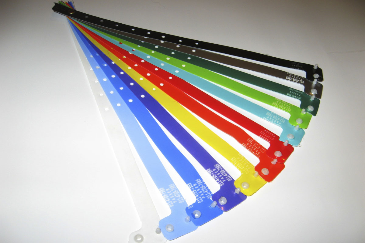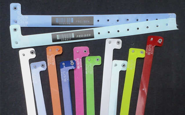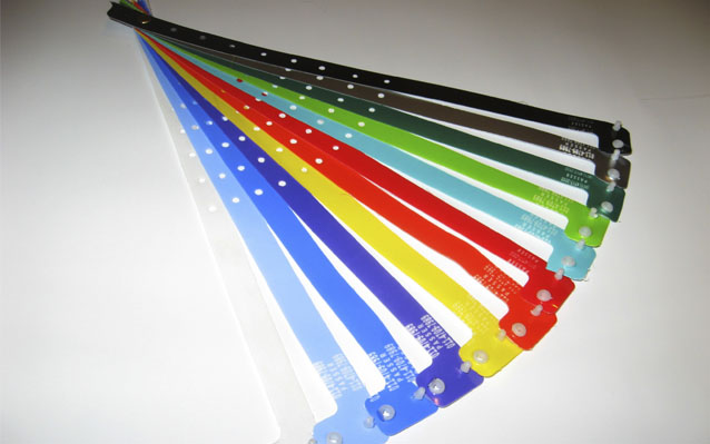 Son pulseras inviolables, ideales para usar en el control de personas, publicidad y promociones. Son suaves, confortables y resistentes a la tracción, a la acción del agua clorada, transpiración, naftas, solventes comunes, etc. Se las fabrica en 8 a 10 brillantes colores. Como su colocación es muy fácil y rápida, se disminuye la cantidad de personal afectado a esta tarea.
