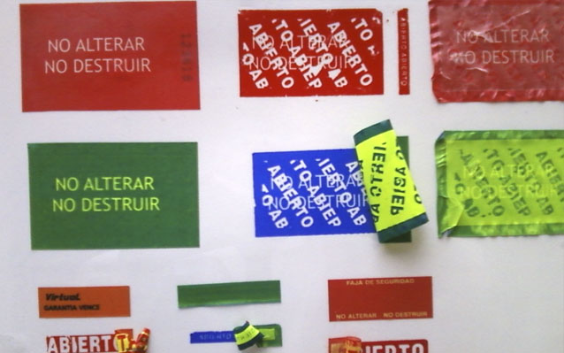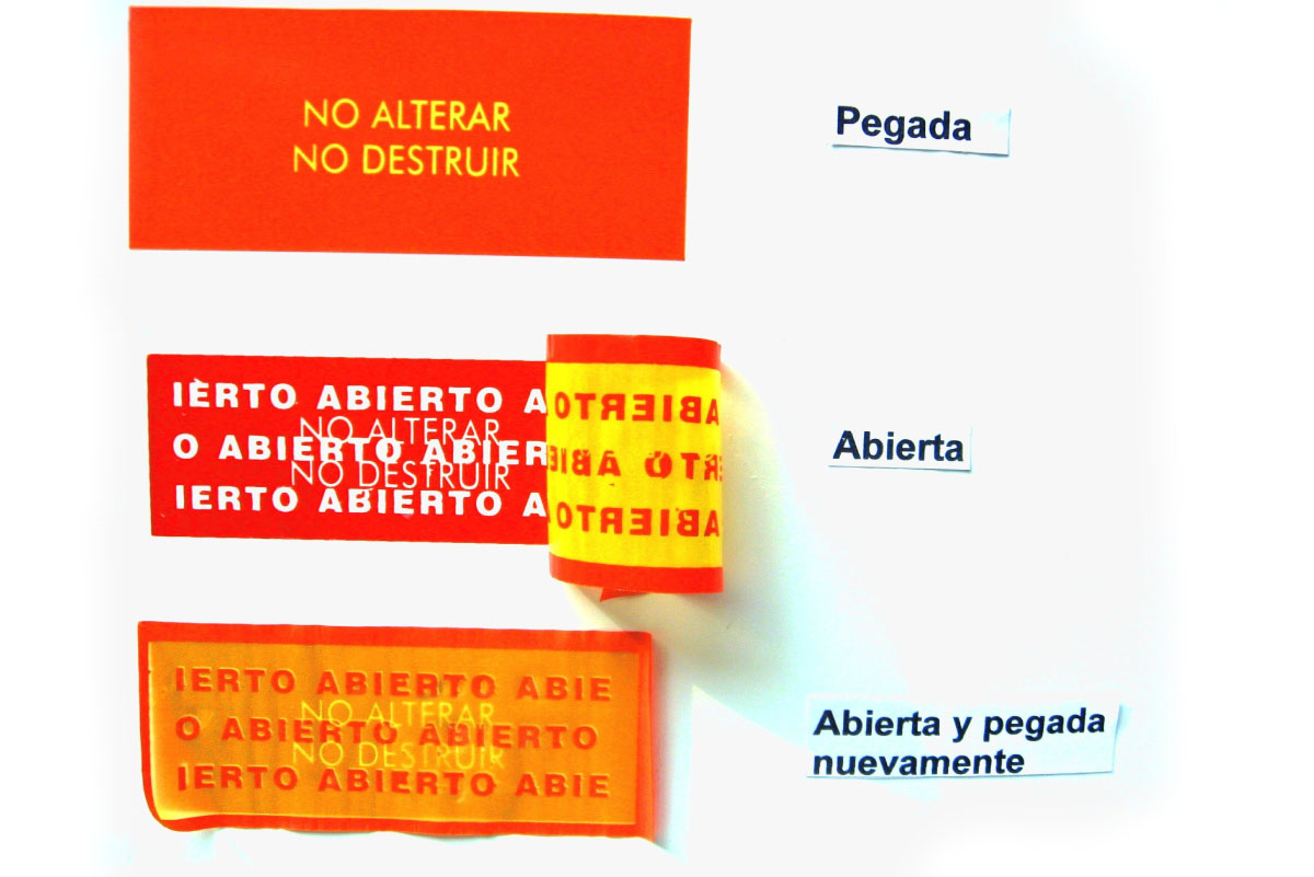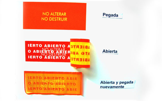 Las fabricamos con un film de plástico que tiene una textura similar al papel, pero es impermeable y de altísima resistencia al desgarro. En uno de sus extremos posee un adhesivo sensitivo a la presión. Cuando un extremo es pegado al otro, la adhesión es permanente, aun bajo del agua y es capaz de resistir altos valores de tracción antes que se destruya, resultados imposible reconstruirla. Su medida es de 2 cm. de ancho y 26 cm. de largo.
